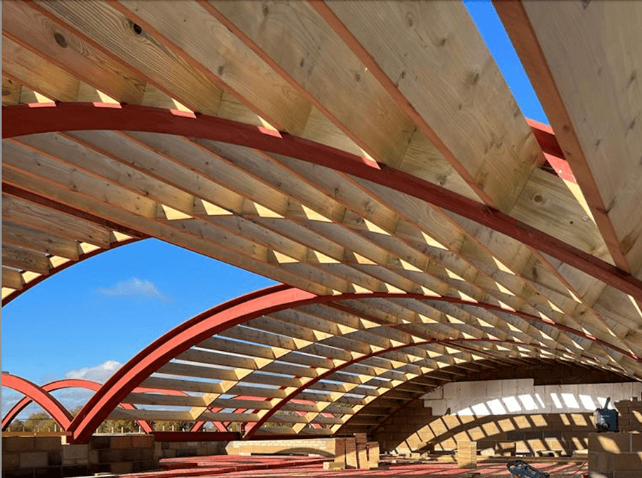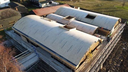 The roofs on the existing building had a three-section curved profile as shown in the pictures above and the existing structure was required to be retained by the planners. As a result, the developer was fully aware from the start of the project that there would be design challenges to overcome with the roof to ensure a cost-effective waterproof finish was achieved.